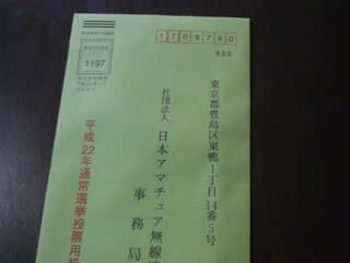 そろそろJARL選挙の締め切りが近いなと思っていたら、総会委任状も同封されていたので、大先輩が総会へ行かれるのならと思い問い合わせしてみた。