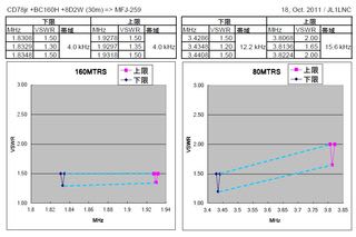 SWRが1.5以下の帯域幅は、1.8/1.9で4kHz、3.5では10kHzほどかな?