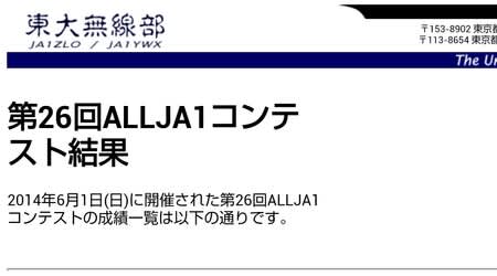 第26回ALL JA1コンテスト結果