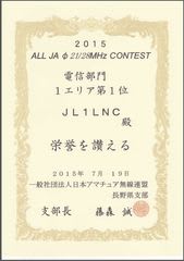 コンテスト2015年ALL JAφ21/28MHzコンテスト賞状 2015年8月13日2025年9月13日 - Leave a Comment なんか、来てた。 どうやらエリア1位だったらしい。 よくがんばった。