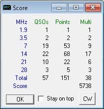■シングルバンド部門3.5MHz 55局、150 x 26 = 3,900点