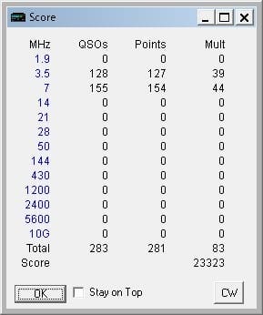 終盤はぽちぽち呼ばれただけだったので、局数的にはもう少し早めに7メガへ移っても良かったけど、もともと3.5シングルのつもりだったので最後までがんばった。