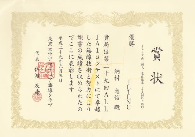 シングルバンド部門は無いけど、アンテナは昨日のまま430。
