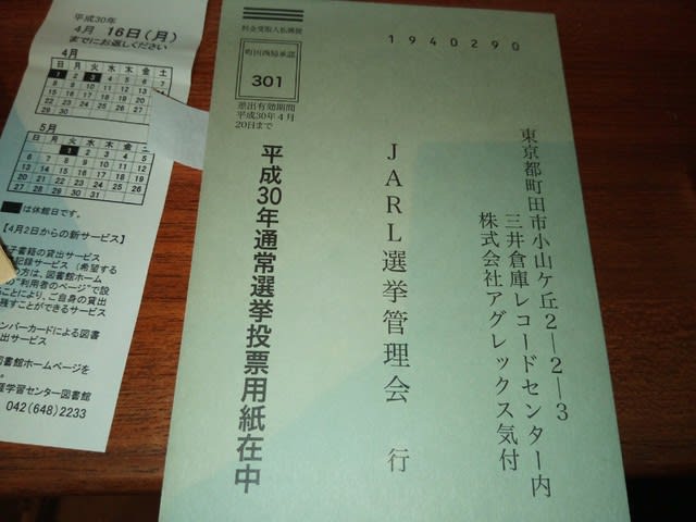 JARLJARL選挙 2018年4月17日2025年9月13日 - Leave a Comment ようやく今朝投函した。 なぜ遅くなったのかというと、マークシートなので鉛筆探してた。。。。。 以前は決意表明とかも読んだけど、まずは価値観を同じくする方に投票するのがいいだろと、交信歴を調べてみた。 ■社員 何名の方と交信しているけど、その中でも、県支部イベントで活躍されてた片を選んだ。 ■理事 交信してる方は、ひとりもいないじゃん。 理事候補にはアマチュアいないのかよ。