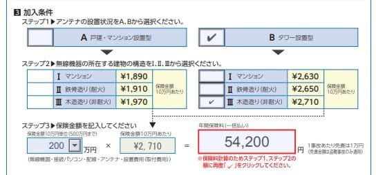 タワー保険はなかなかお得だと感じていたのでこちらも検討してみたけど、年間5万4千円はちょっとキツイ。