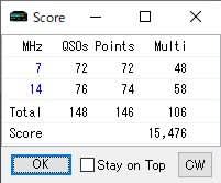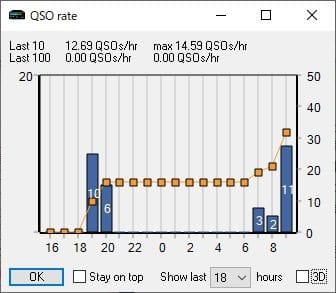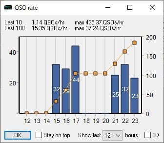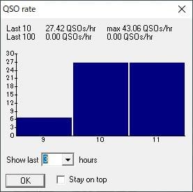 開始早々、同じ1506JSTに2局入力した時だと思うのだけど、QSO rateのLast10 max値が425QSOs/hr。
