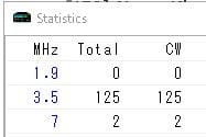 7から始めるも、Jクラスタには上げてもらえたもののRBNには乗らないのは弱かった? 6エリアとHLの2局のみで、3.5に移って19時近くまで。