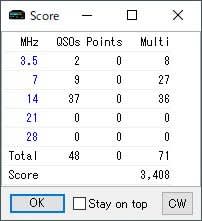 アンテナの交換作業を開始したのがスタート30分前、それからzLog最新版のダウンロードとシリアルポートの設定してたら10分ほど遅れちゃった。