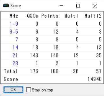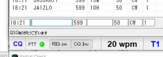 とりあえず上から順番ということで28で1局やって21に移ったけど、そこで何局か交信した後にJAが主役のコンテストだからと22wpmでCQ出した。