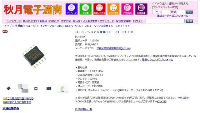CH340Kはクロック水晶を用意しなくても良く、なかなか優れモノだと思います。