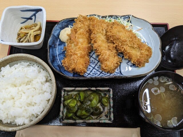 夕方は、歩数を稼いでからもう一方の食堂で岩魚フライ定食。