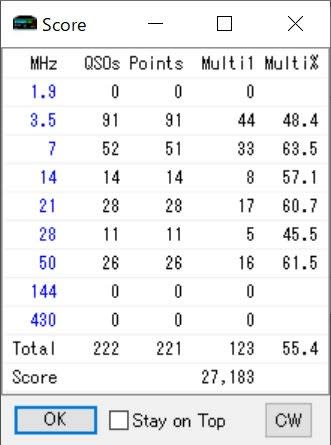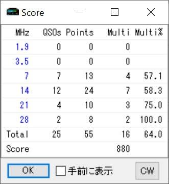 風があるからとフルアップまではしなかったからか、1.9はSWR高いし。